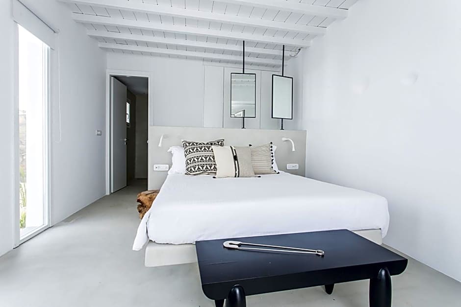 “Generously sized upper floor sea view suite with big terrace & jacuzzi . It features Suites with a bedroom with handmade wrought iron Queen-Size bed and a living room with 2 sofa beds as well as open plan Suites”